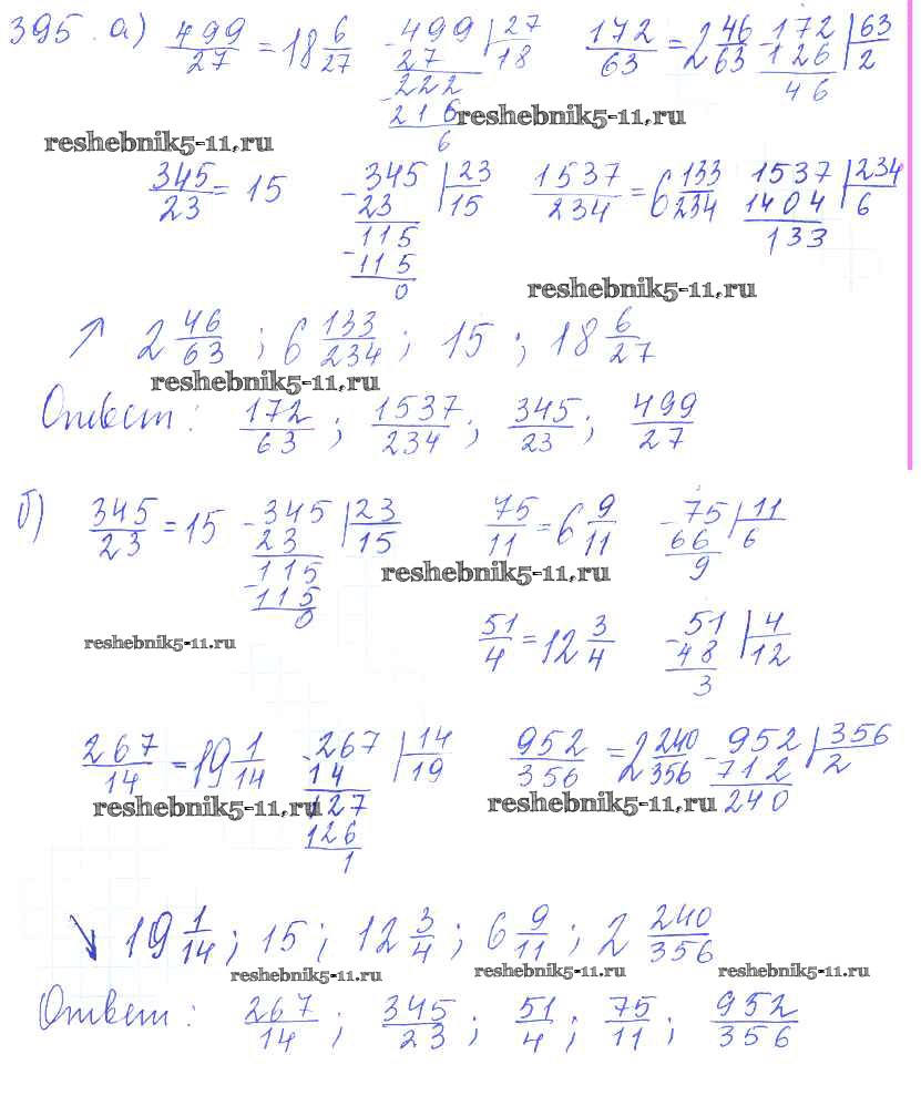 Готовая домашняя работа с ответами по Математике за 5 класс Зубарева, Мордкович Учебник Мнемозина 2015 ФГОС - Упражнения 395