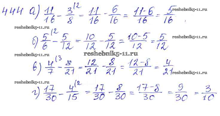 Готовая домашняя работа с ответами по Математике за 5 класс Зубарева, Мордкович Учебник Мнемозина 2015 ФГОС - Упражнения 444