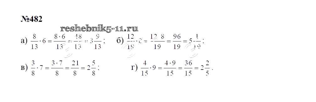 Готовая домашняя работа с ответами по Математике за 5 класс Зубарева, Мордкович Учебник Мнемозина 2015 ФГОС - Упражнения 482