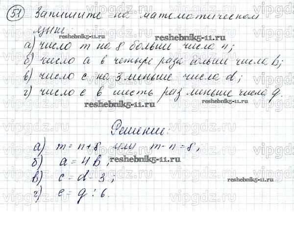 Готовая домашняя работа с ответами по Математике за 5 класс Зубарева, Мордкович Учебник Мнемозина 2015 ФГОС - Упражнения 51