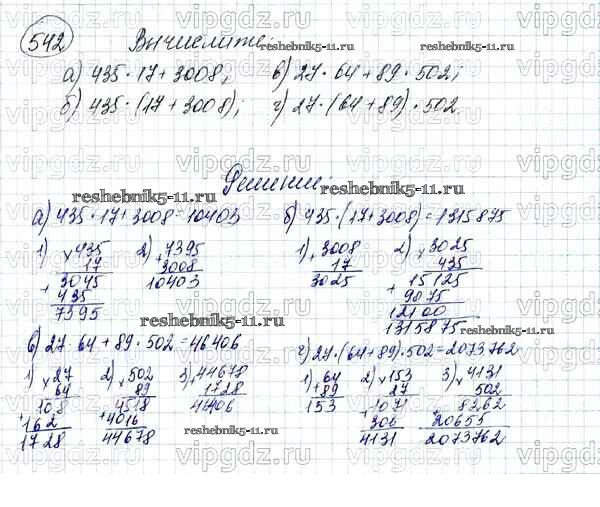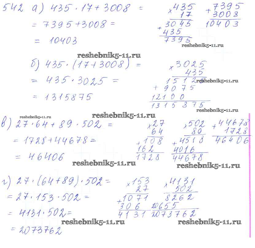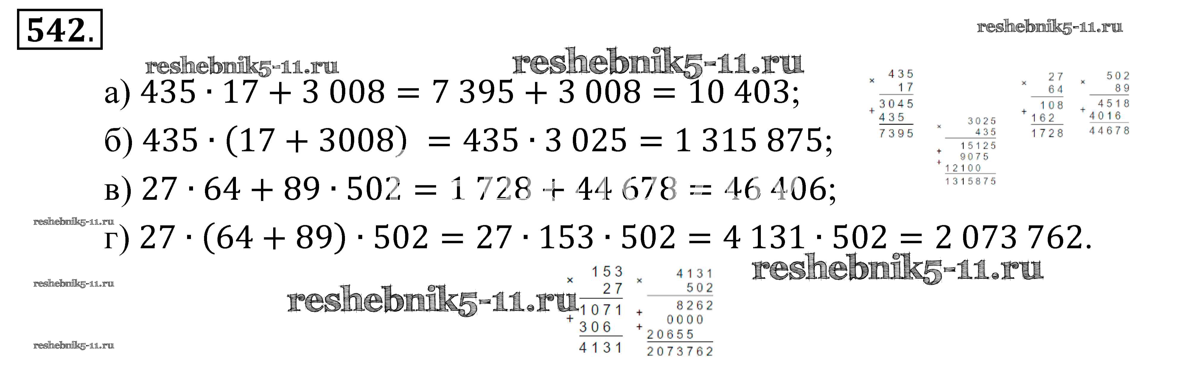 Готовая домашняя работа с ответами по Математике за 5 класс Зубарева, Мордкович Учебник Мнемозина 2015 ФГОС - Упражнения 542