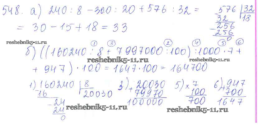 Готовая домашняя работа с ответами по Математике за 5 класс Зубарева, Мордкович Учебник Мнемозина 2015 ФГОС - Упражнения 548