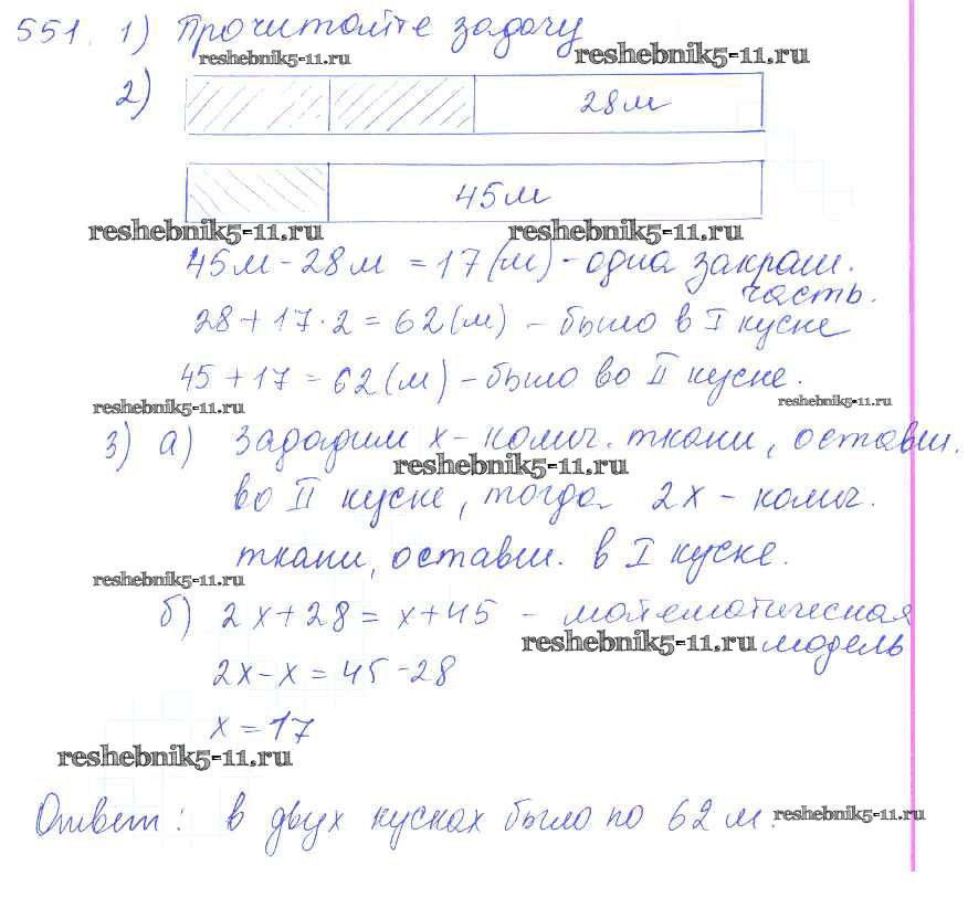 Готовая домашняя работа с ответами по Математике за 5 класс Зубарева, Мордкович Учебник Мнемозина 2015 ФГОС - Упражнения 551