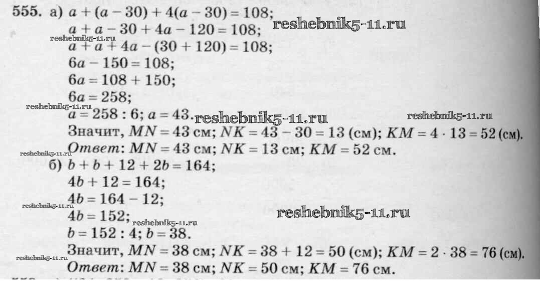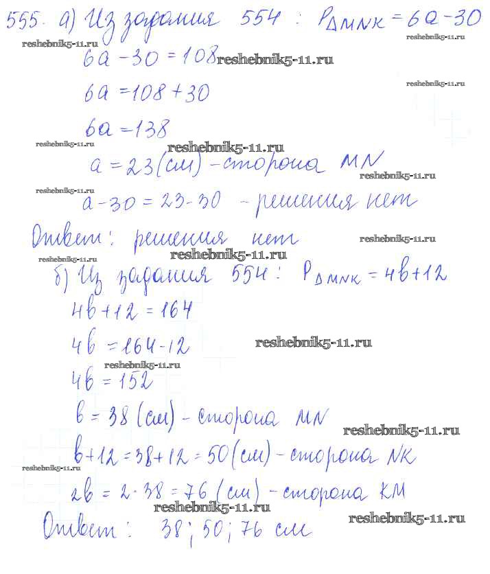 Готовая домашняя работа с ответами по Математике за 5 класс Зубарева, Мордкович Учебник Мнемозина 2015 ФГОС - Упражнения 555