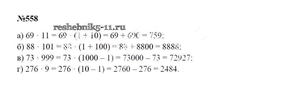 Готовая домашняя работа с ответами по Математике за 5 класс Зубарева, Мордкович Учебник Мнемозина 2015 ФГОС - Упражнения 558
