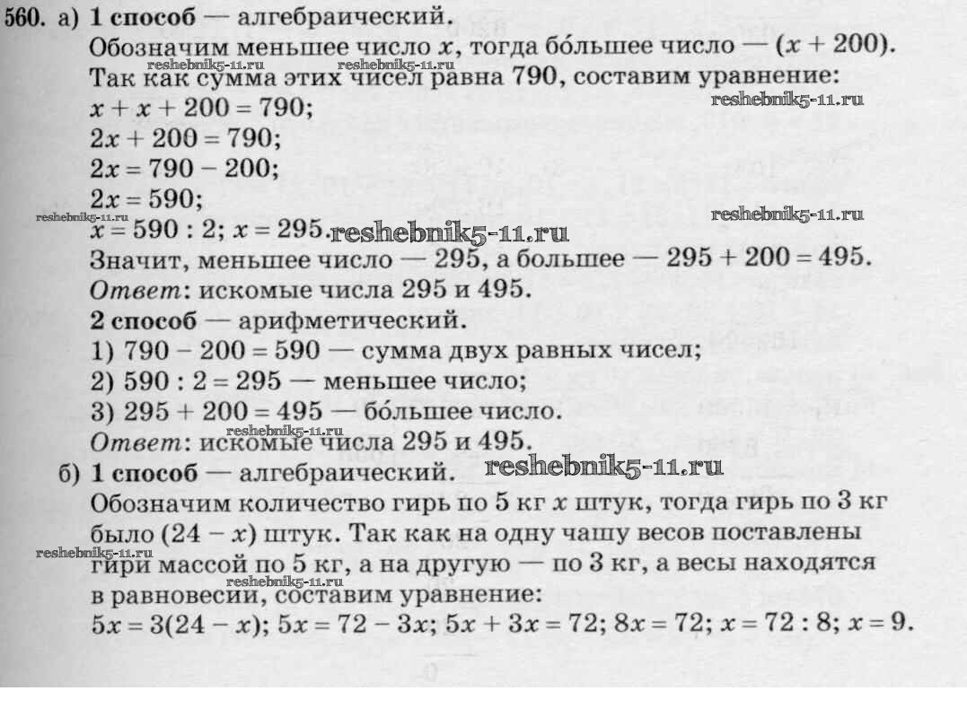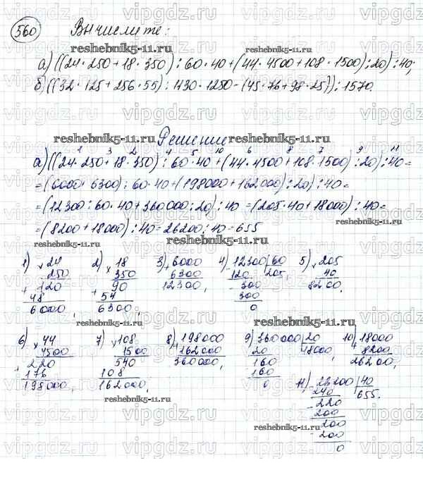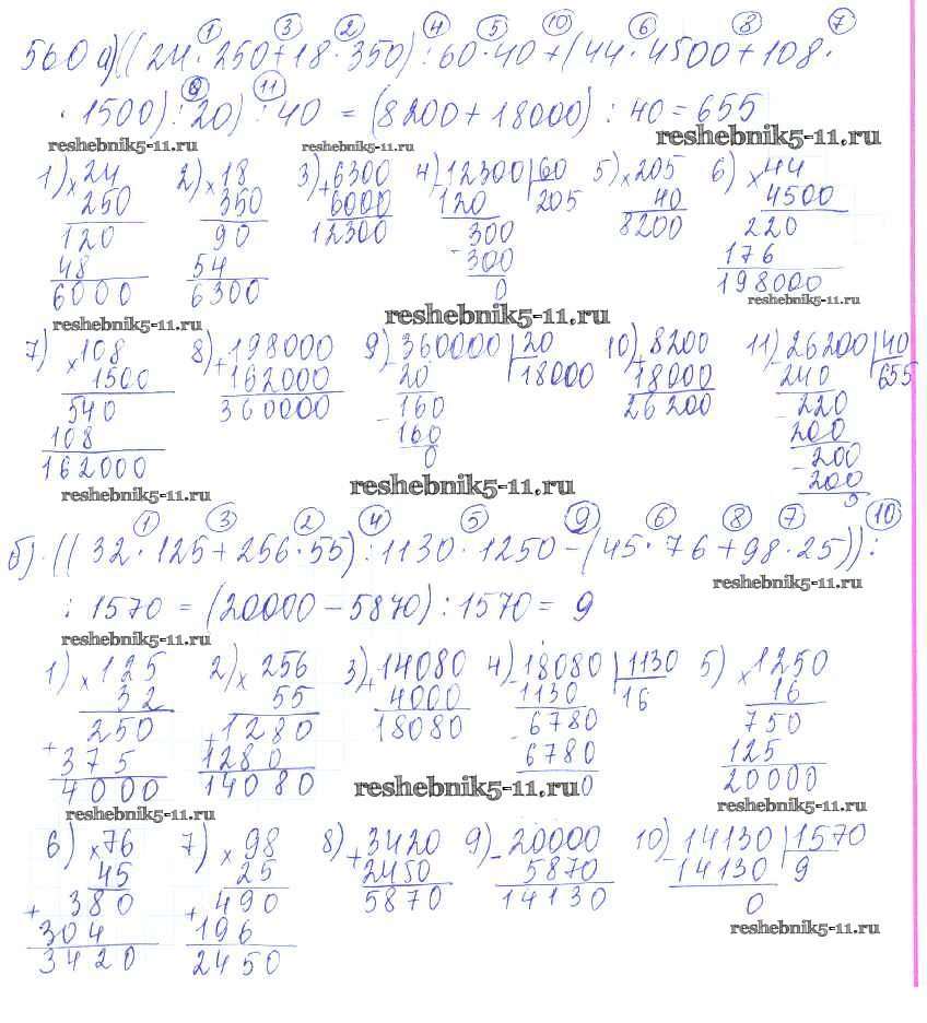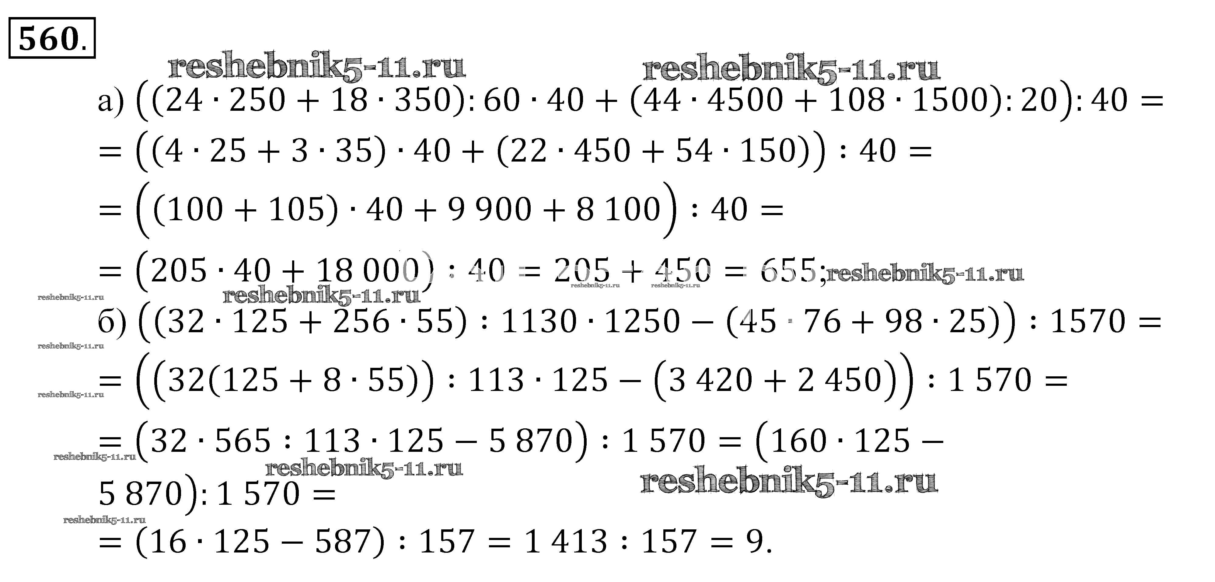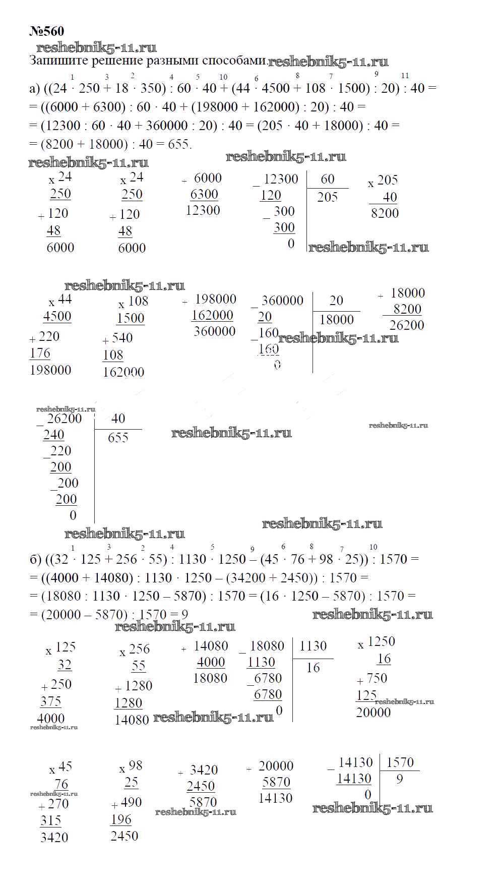 Готовая домашняя работа с ответами по Математике за 5 класс Зубарева, Мордкович Учебник Мнемозина 2015 ФГОС - Упражнения 560