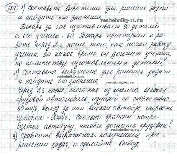 Готовая домашняя работа с ответами по Математике за 5 класс Зубарева, Мордкович Учебник Мнемозина 2015 ФГОС - Упражнения 601
