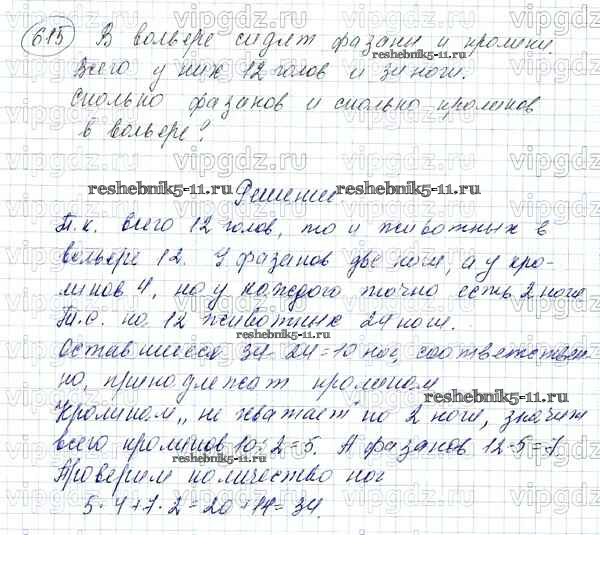 Готовая домашняя работа с ответами по Математике за 5 класс Зубарева, Мордкович Учебник Мнемозина 2015 ФГОС - Упражнения 615