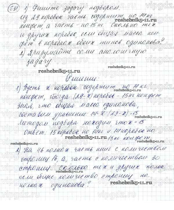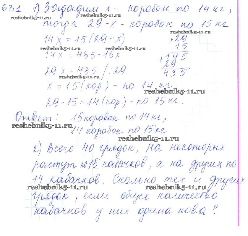 Готовая домашняя работа с ответами по Математике за 5 класс Зубарева, Мордкович Учебник Мнемозина 2015 ФГОС - Упражнения 631
