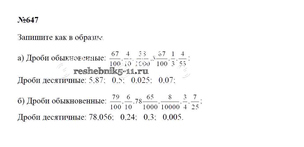 Готовая домашняя работа с ответами по Математике за 5 класс Зубарева, Мордкович Учебник Мнемозина 2015 ФГОС - Упражнения 647