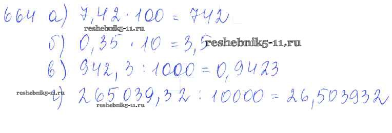 Готовая домашняя работа с ответами по Математике за 5 класс Зубарева, Мордкович Учебник Мнемозина 2015 ФГОС - Упражнения 664