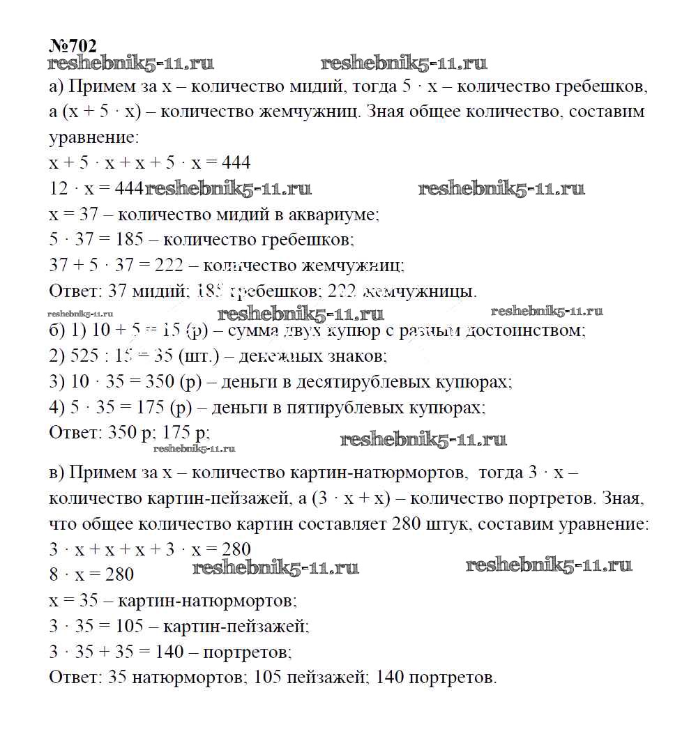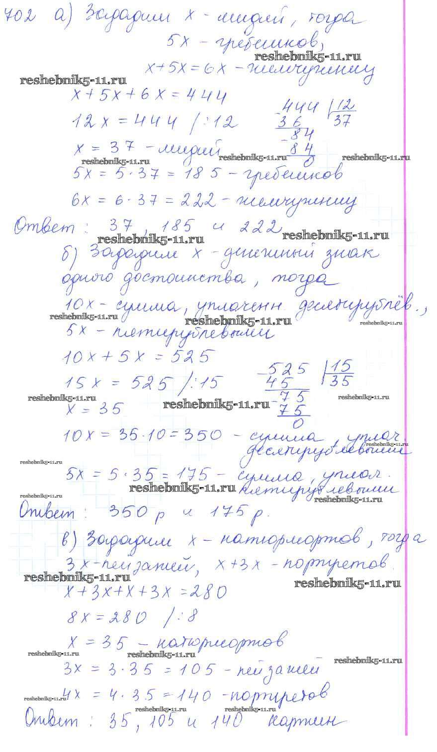 Готовая домашняя работа с ответами по Математике за 5 класс Зубарева, Мордкович Учебник Мнемозина 2015 ФГОС - Упражнения 702