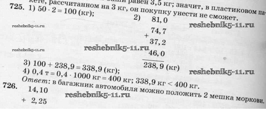 Готовая домашняя работа с ответами по Математике за 5 класс Зубарева, Мордкович Учебник Мнемозина 2015 ФГОС - Упражнения 725