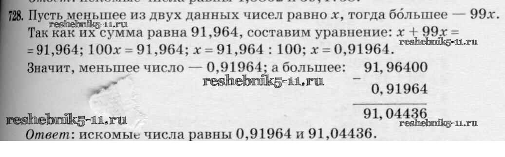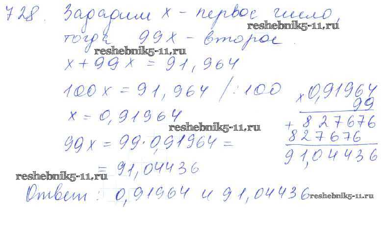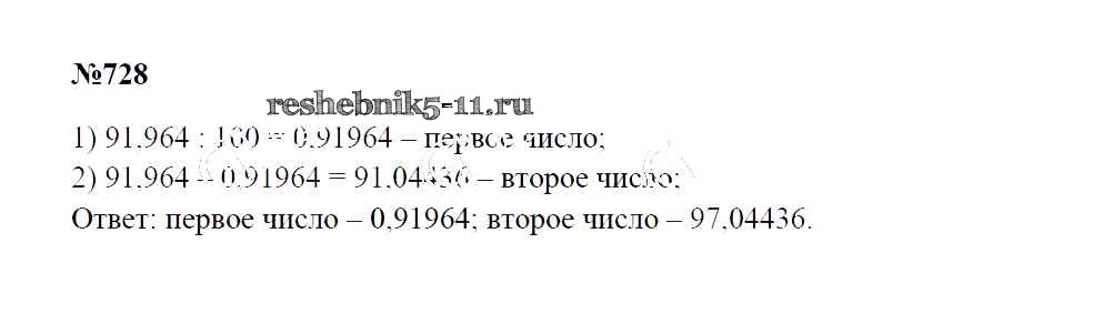 Готовая домашняя работа с ответами по Математике за 5 класс Зубарева, Мордкович Учебник Мнемозина 2015 ФГОС - Упражнения 728