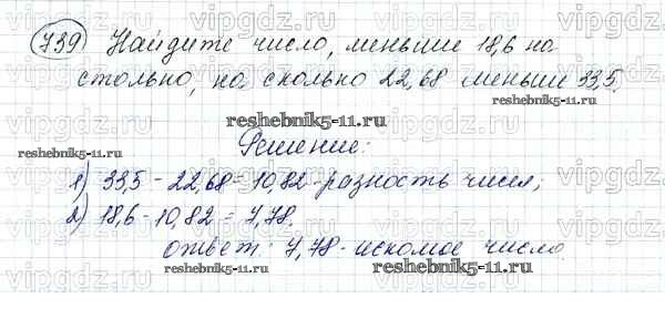 Готовая домашняя работа с ответами по Математике за 5 класс Зубарева, Мордкович Учебник Мнемозина 2015 ФГОС - Упражнения 739