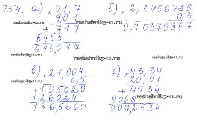 Готовая домашняя работа с ответами по Математике за 5 класс Зубарева, Мордкович Учебник Мнемозина 2015 ФГОС - Упражнения 754