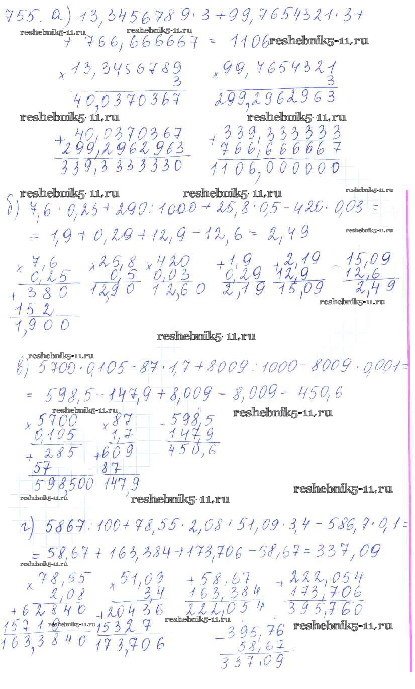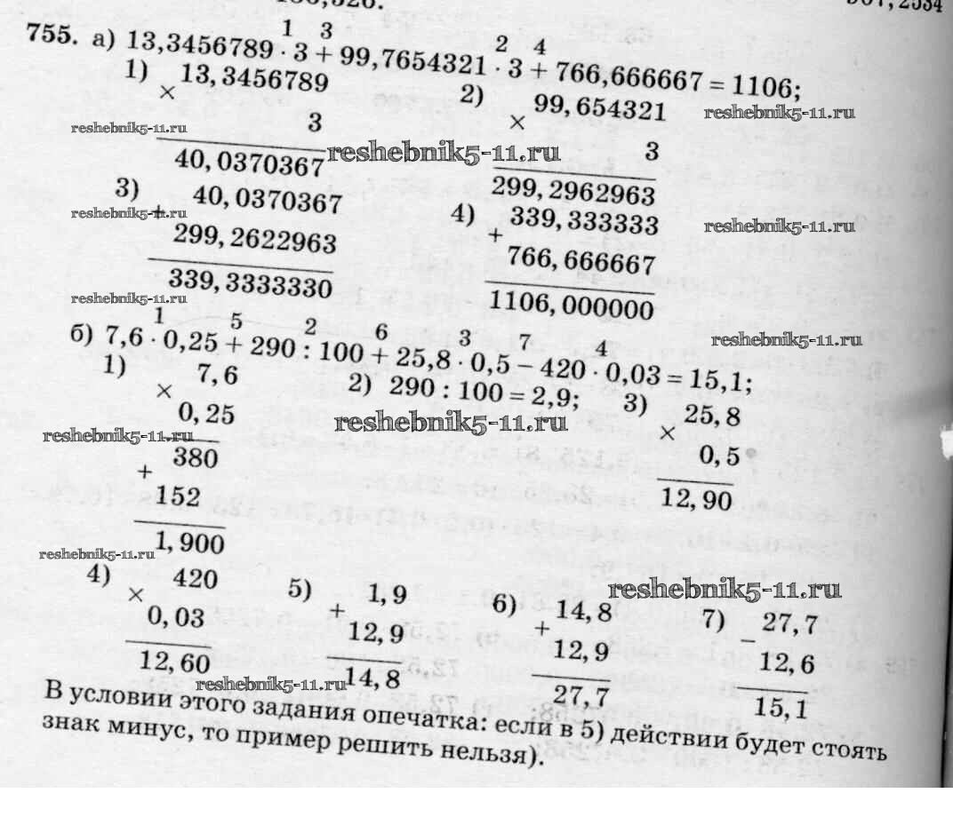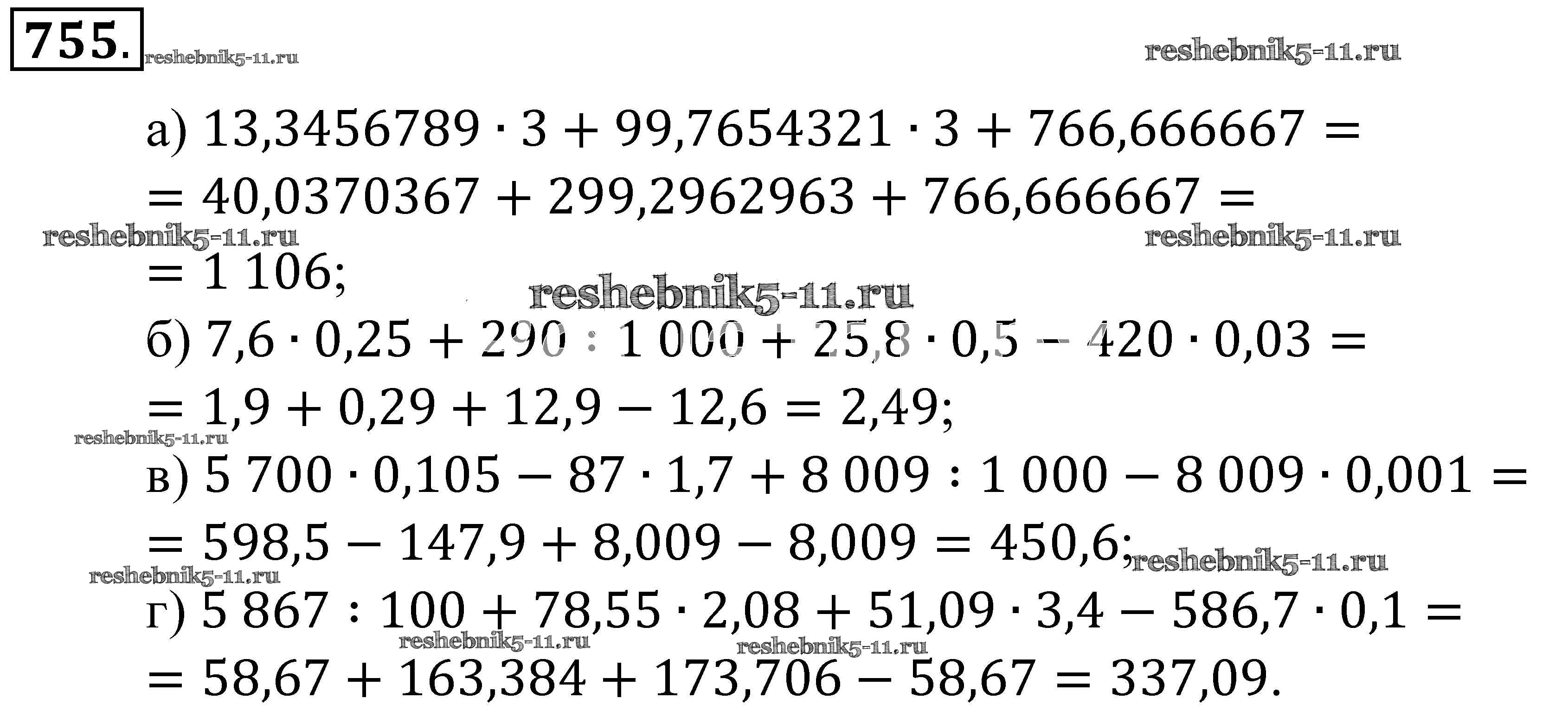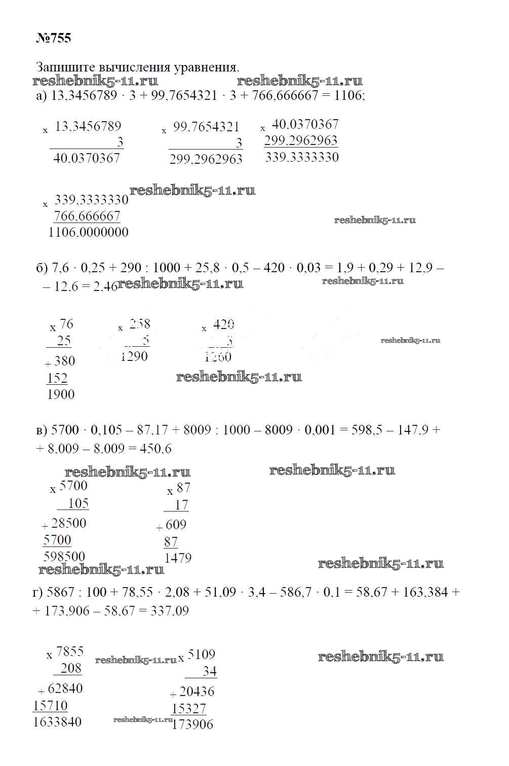 Готовая домашняя работа с ответами по Математике за 5 класс Зубарева, Мордкович Учебник Мнемозина 2015 ФГОС - Упражнения 755