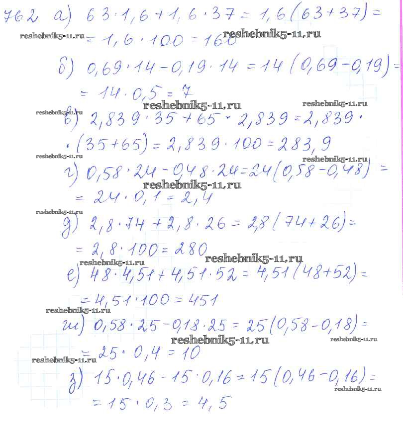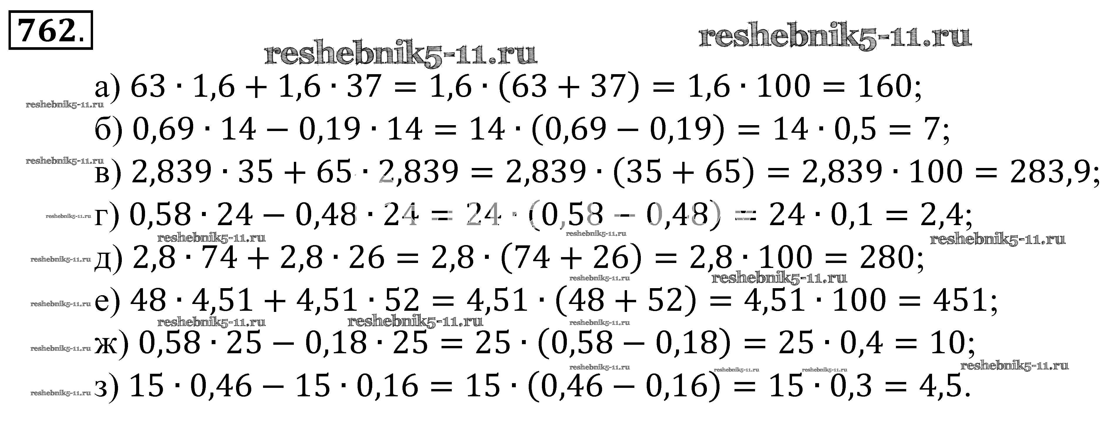 Готовая домашняя работа с ответами по Математике за 5 класс Зубарева, Мордкович Учебник Мнемозина 2015 ФГОС - Упражнения 762