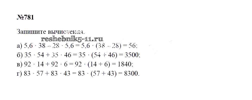 Готовая домашняя работа с ответами по Математике за 5 класс Зубарева, Мордкович Учебник Мнемозина 2015 ФГОС - Упражнения 781