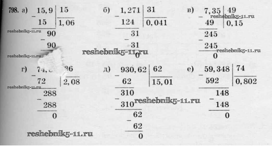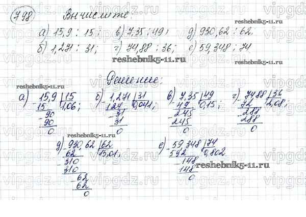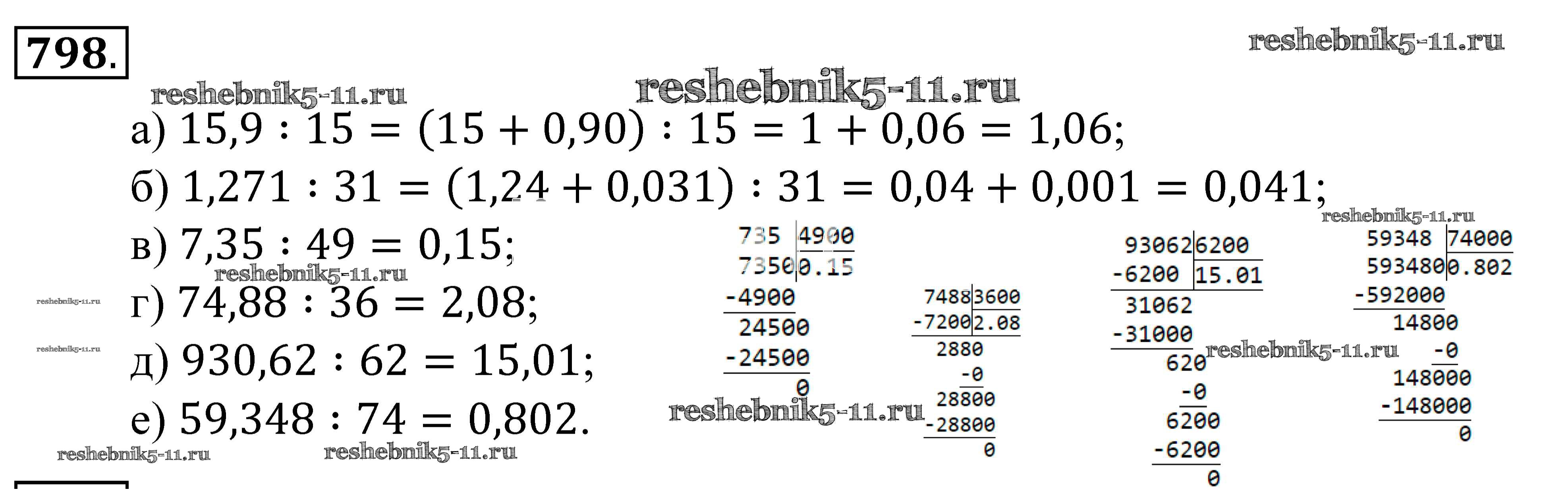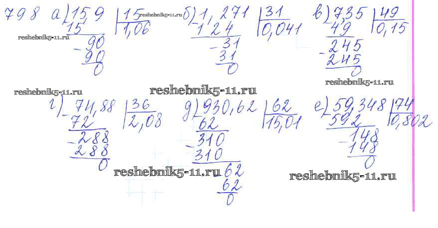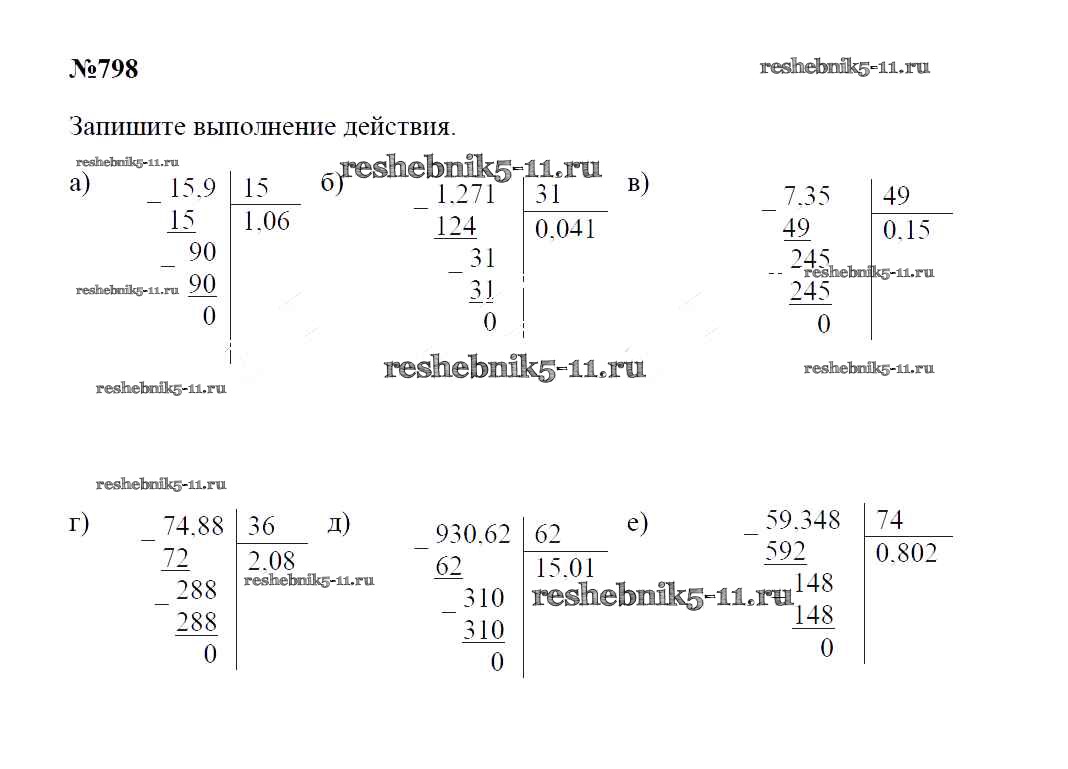 Готовая домашняя работа с ответами по Математике за 5 класс Зубарева, Мордкович Учебник Мнемозина 2015 ФГОС - Упражнения 798