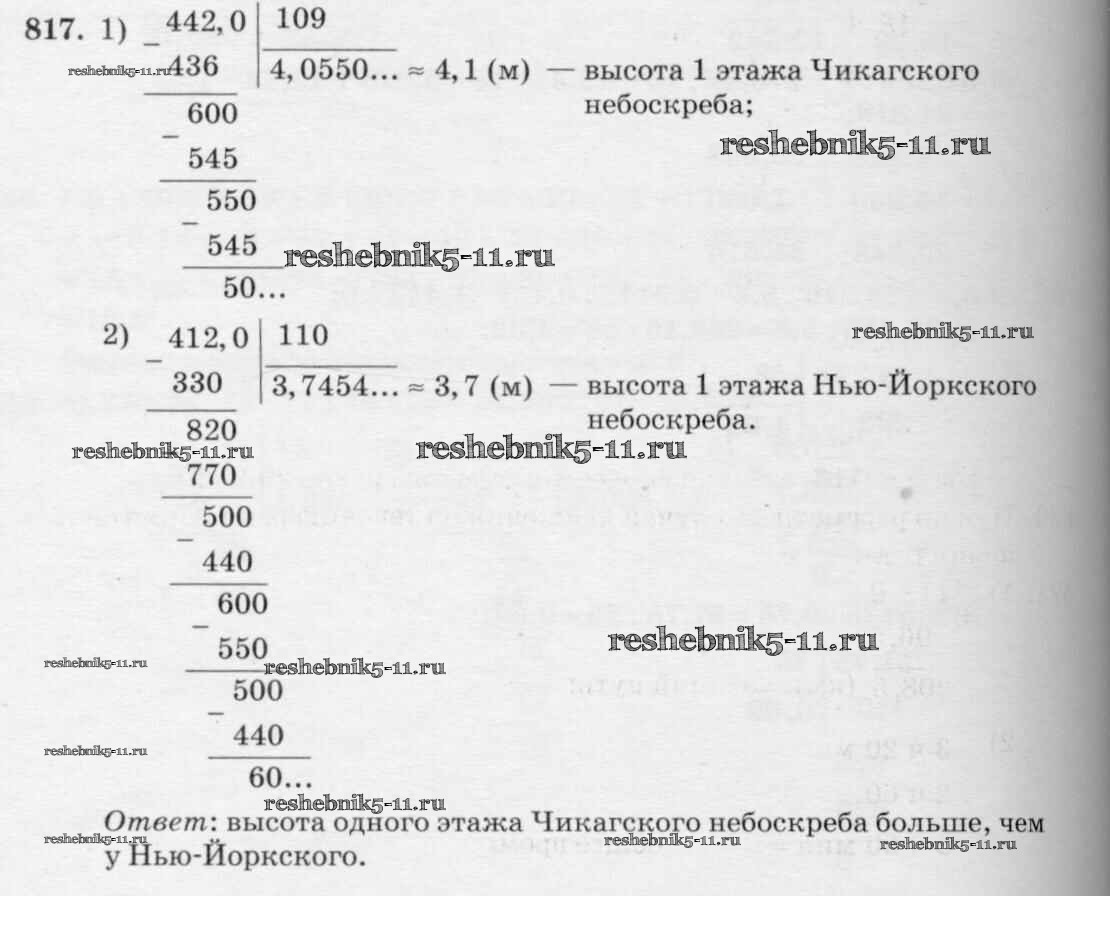Готовая домашняя работа с ответами по Математике за 5 класс Зубарева, Мордкович Учебник Мнемозина 2015 ФГОС - Упражнения 817
