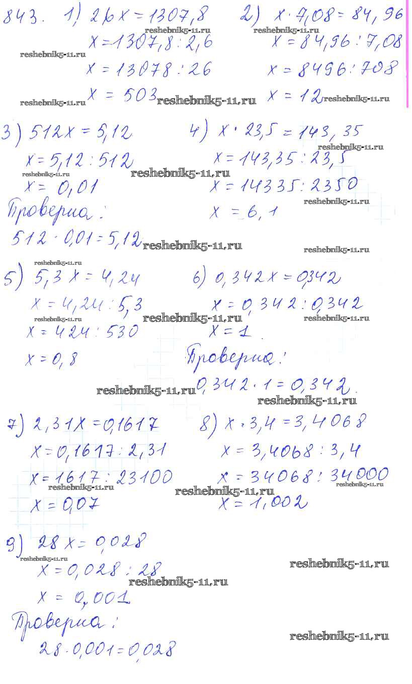 Готовая домашняя работа с ответами по Математике за 5 класс Зубарева, Мордкович Учебник Мнемозина 2015 ФГОС - Упражнения 843