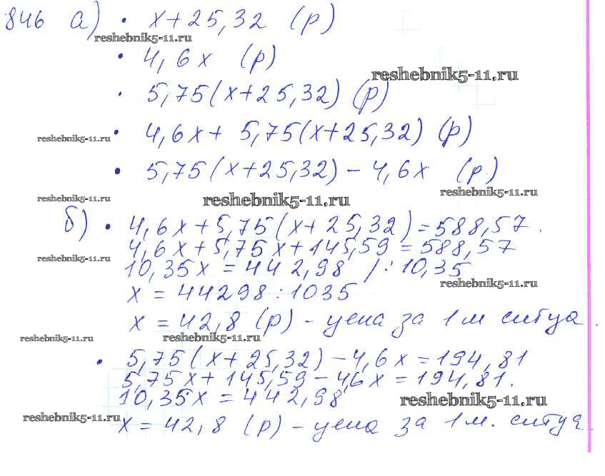 Готовая домашняя работа с ответами по Математике за 5 класс Зубарева, Мордкович Учебник Мнемозина 2015 ФГОС - Упражнения 846