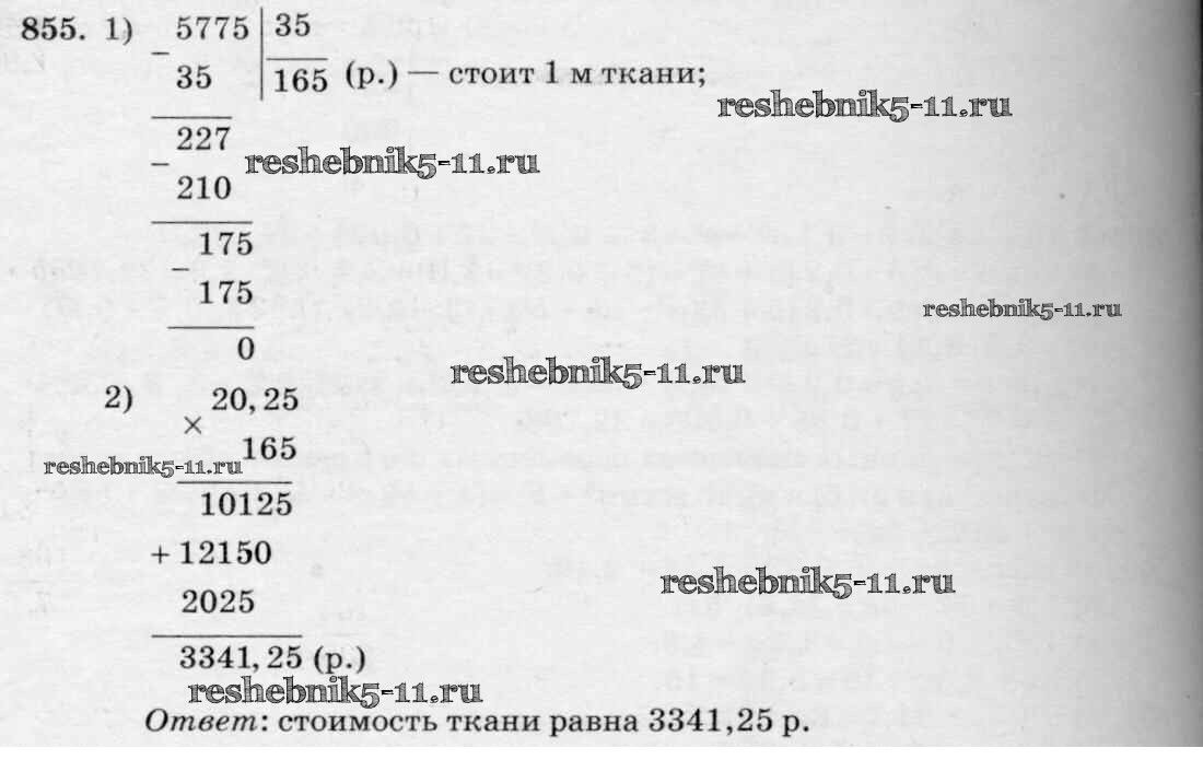 Готовая домашняя работа с ответами по Математике за 5 класс Зубарева, Мордкович Учебник Мнемозина 2015 ФГОС - Упражнения 855