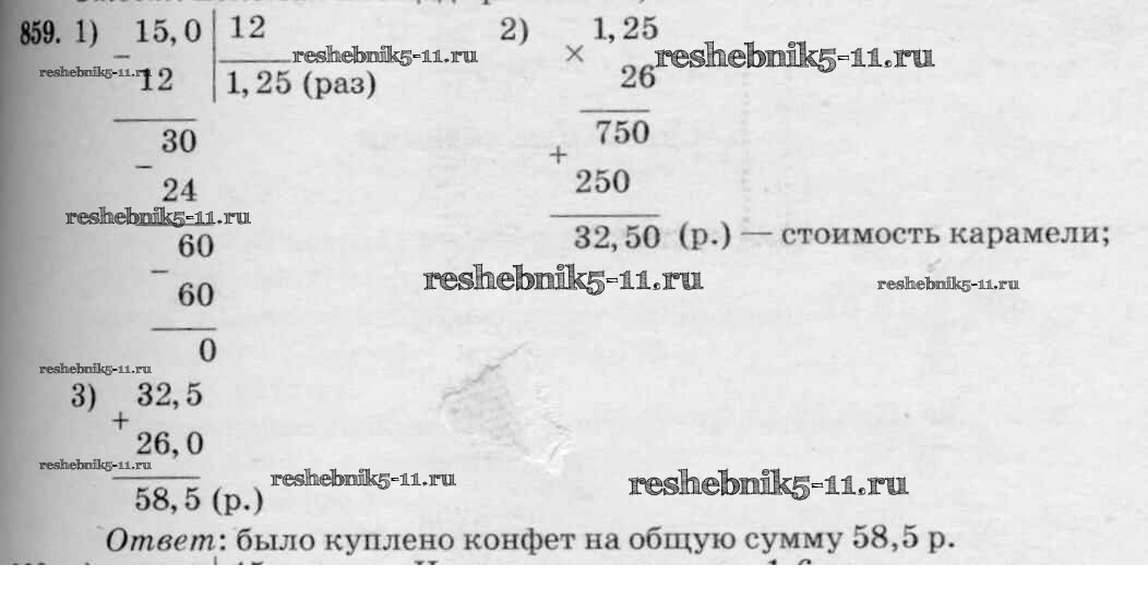 Готовая домашняя работа с ответами по Математике за 5 класс Зубарева, Мордкович Учебник Мнемозина 2015 ФГОС - Упражнения 859