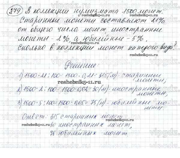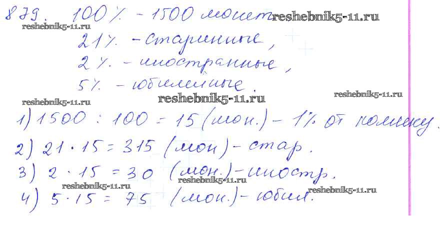 Готовая домашняя работа с ответами по Математике за 5 класс Зубарева, Мордкович Учебник Мнемозина 2015 ФГОС - Упражнения 879