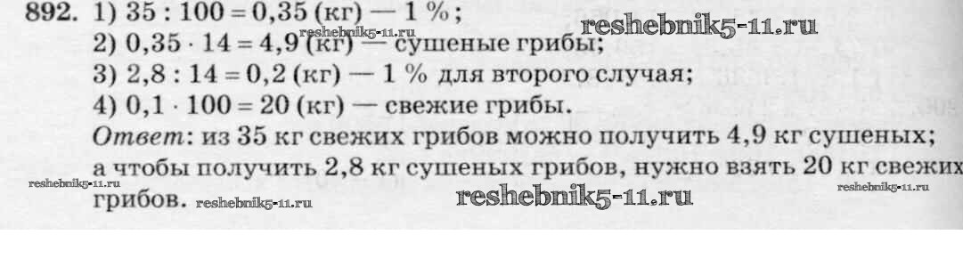 Готовая домашняя работа с ответами по Математике за 5 класс Зубарева, Мордкович Учебник Мнемозина 2015 ФГОС - Упражнения 892