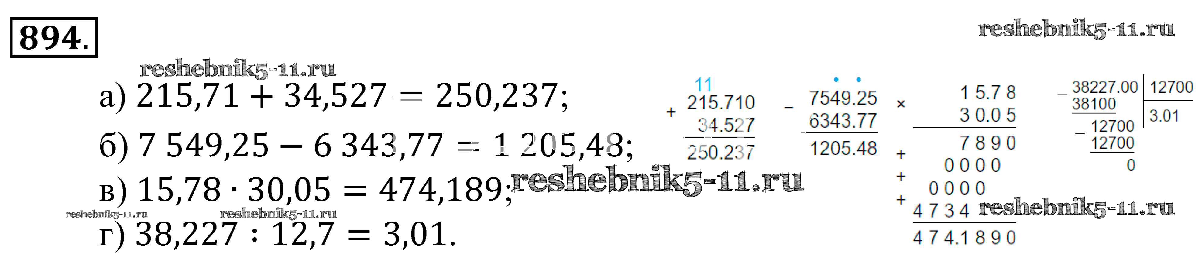 Готовая домашняя работа с ответами по Математике за 5 класс Зубарева, Мордкович Учебник Мнемозина 2015 ФГОС - Упражнения 894