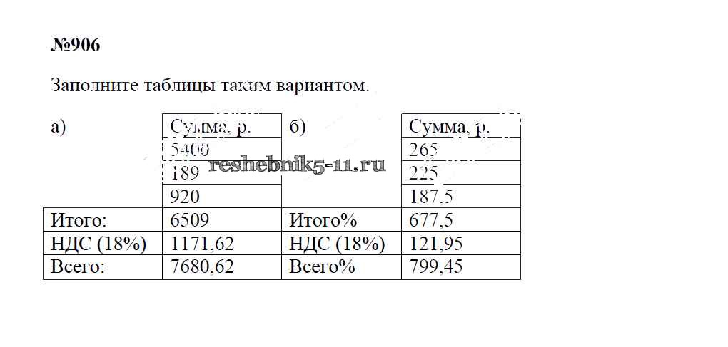 Готовая домашняя работа с ответами по Математике за 5 класс Зубарева, Мордкович Учебник Мнемозина 2015 ФГОС - Упражнения 906
