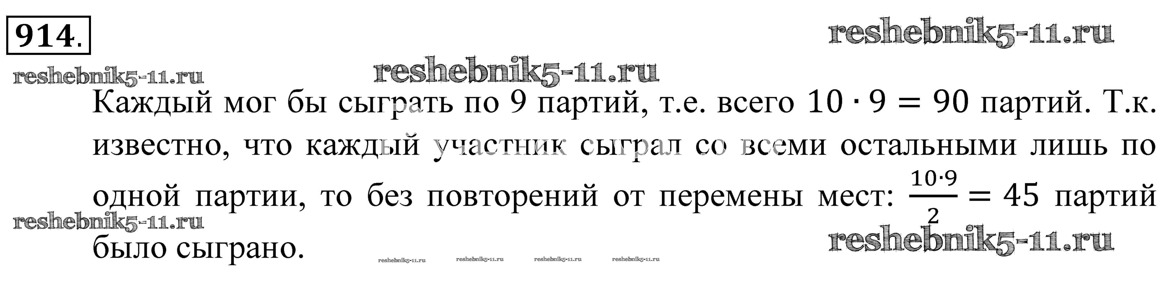 Готовая домашняя работа с ответами по Математике за 5 класс Зубарева, Мордкович Учебник Мнемозина 2015 ФГОС - Упражнения 914