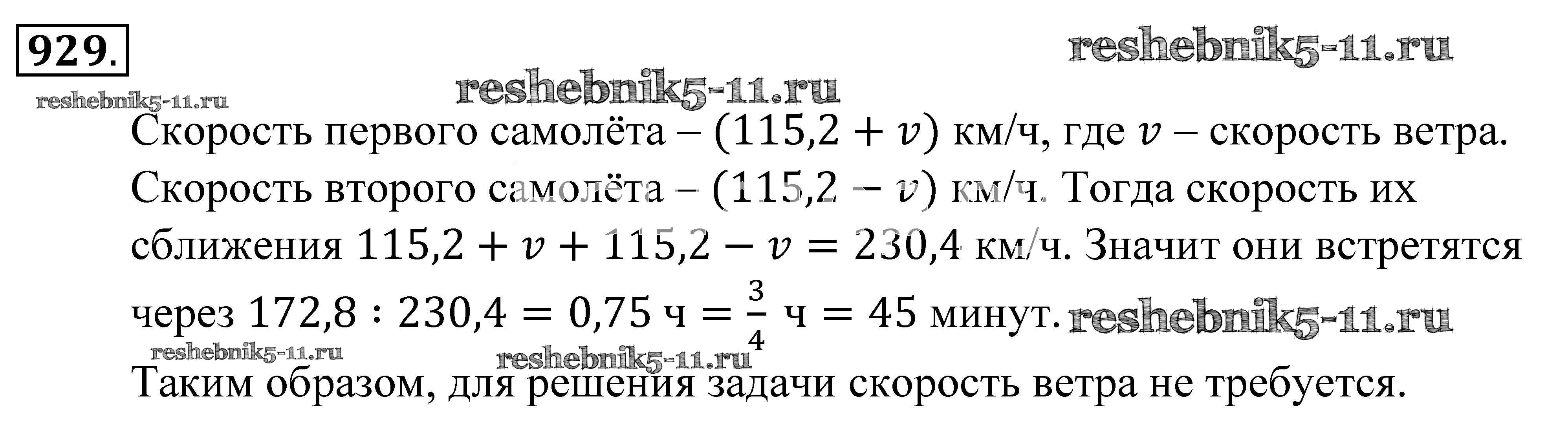 Готовая домашняя работа с ответами по Математике за 5 класс Зубарева, Мордкович Учебник Мнемозина 2015 ФГОС - Упражнения 929
