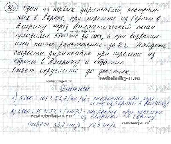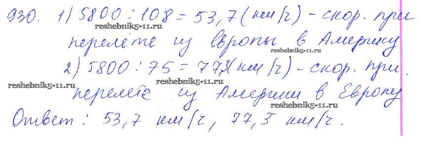 Готовая домашняя работа с ответами по Математике за 5 класс Зубарева, Мордкович Учебник Мнемозина 2015 ФГОС - Упражнения 930