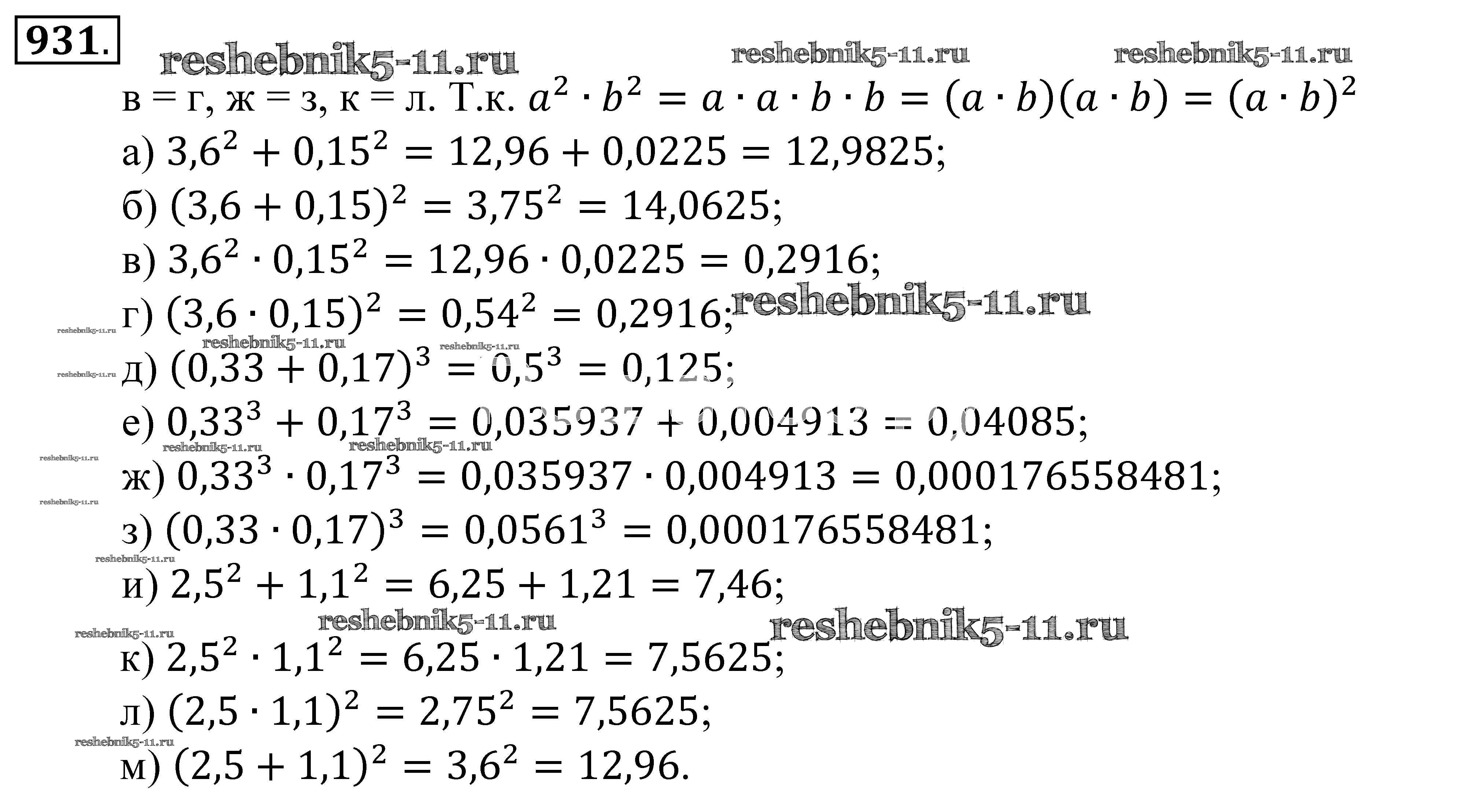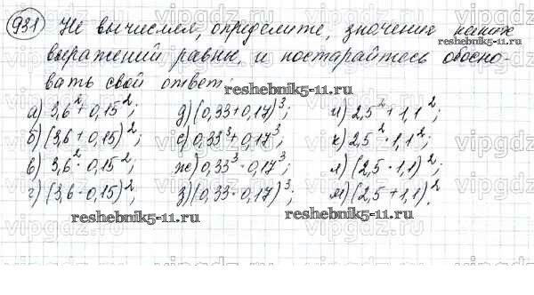 Готовая домашняя работа с ответами по Математике за 5 класс Зубарева, Мордкович Учебник Мнемозина 2015 ФГОС - Упражнения 931