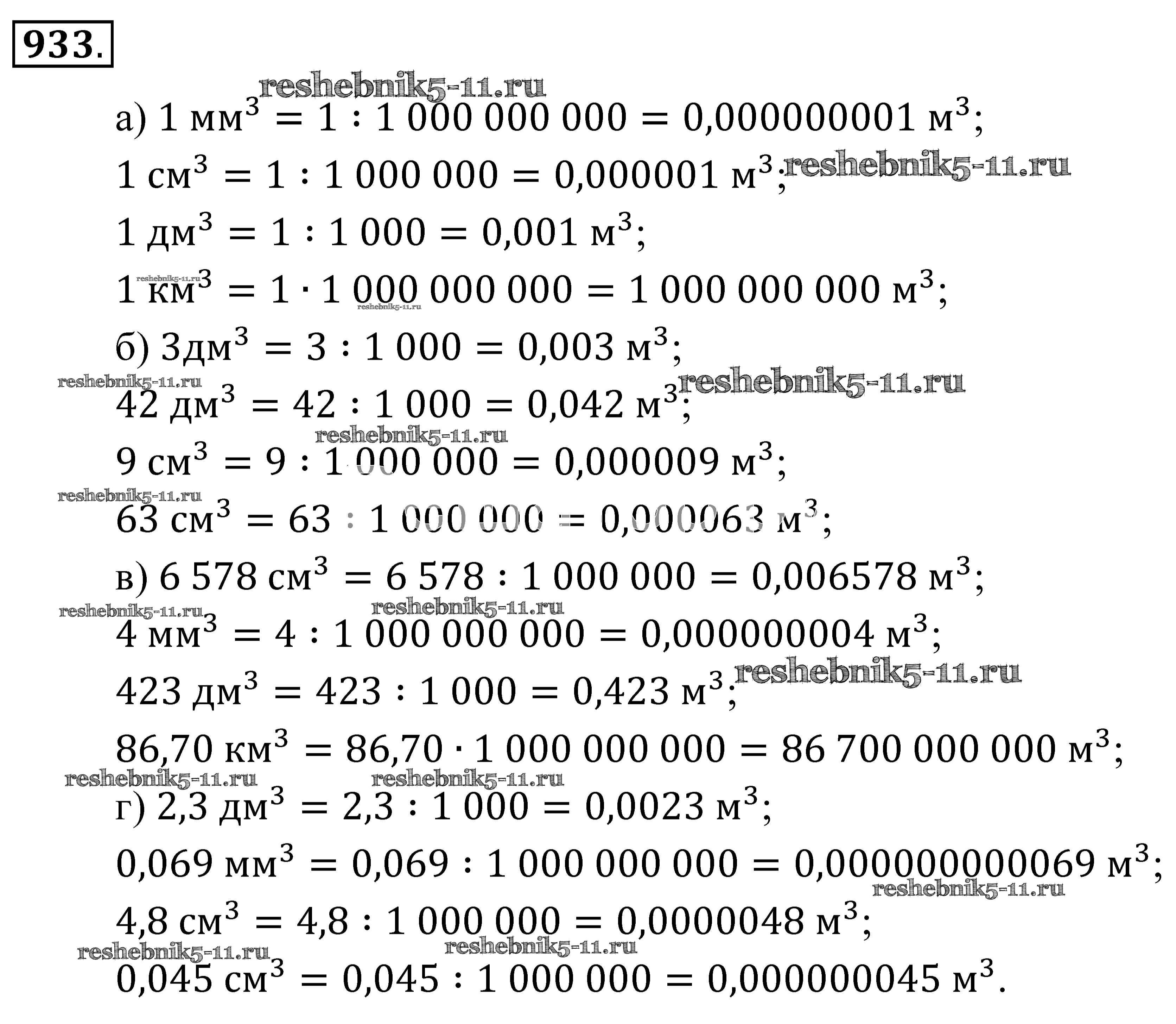Готовая домашняя работа с ответами по Математике за 5 класс Зубарева, Мордкович Учебник Мнемозина 2015 ФГОС - Упражнения 933