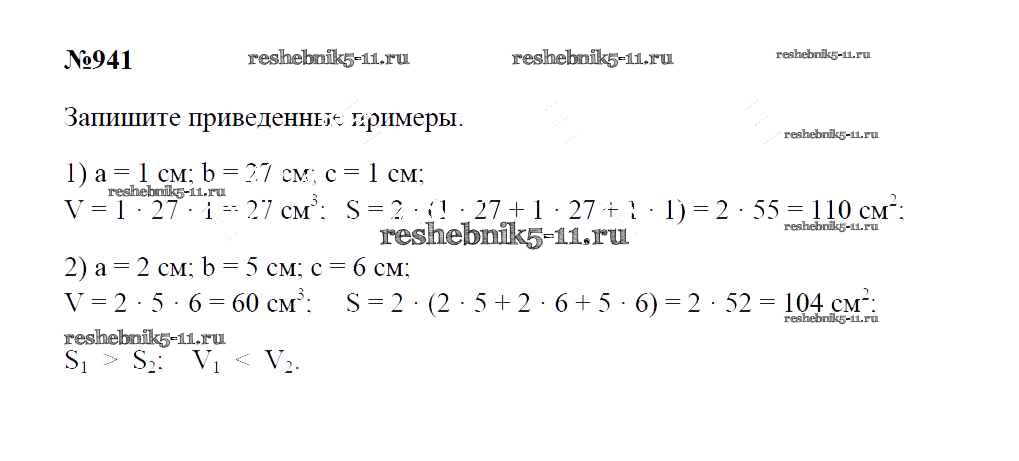 Готовая домашняя работа с ответами по Математике за 5 класс Зубарева, Мордкович Учебник Мнемозина 2015 ФГОС - Упражнения 941