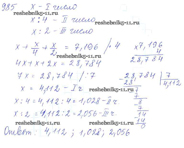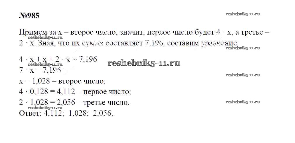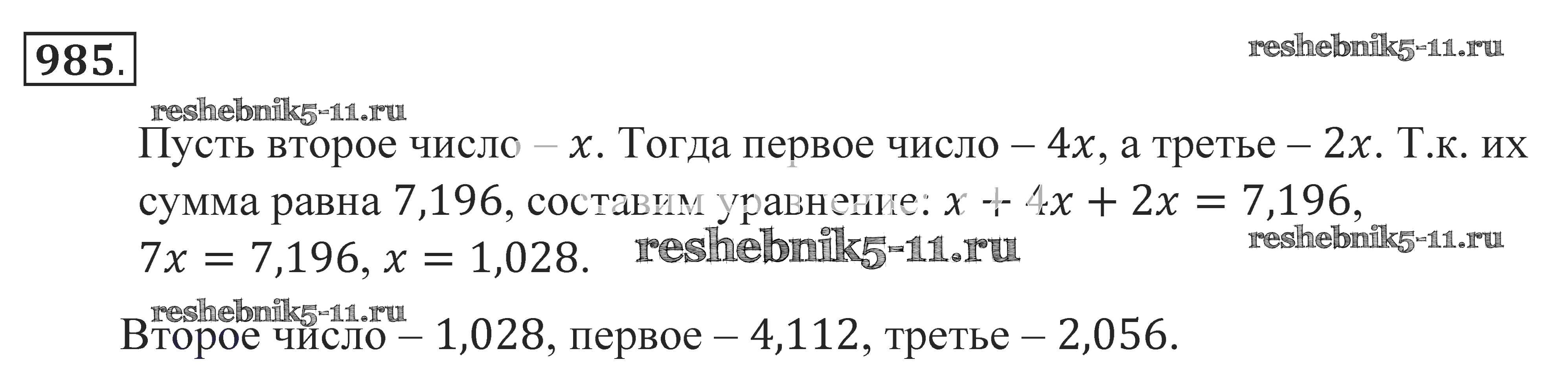 Готовая домашняя работа с ответами по Математике за 5 класс Зубарева, Мордкович Учебник Мнемозина 2015 ФГОС - Упражнения 985
