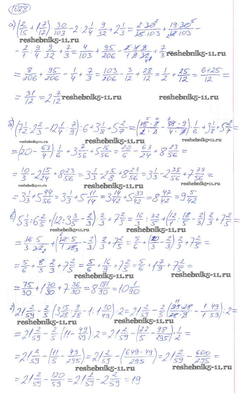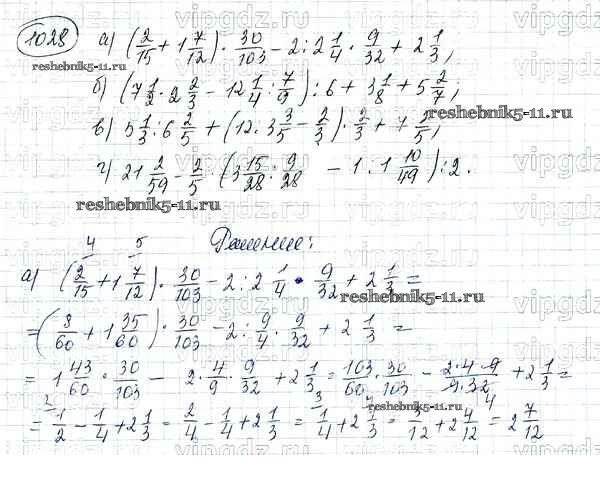 Готовая домашняя работа с ответами по Математике за 5 класс Никольский, Потапов, Решетников, Шевкин Учебник МГУ - школе Просвещение 2016 ФГОС - Упражнения 1028
