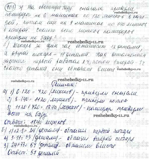 Готовая домашняя работа с ответами по Математике за 5 класс Никольский, Потапов, Решетников, Шевкин Учебник МГУ - школе Просвещение 2016 ФГОС - Упражнения 103