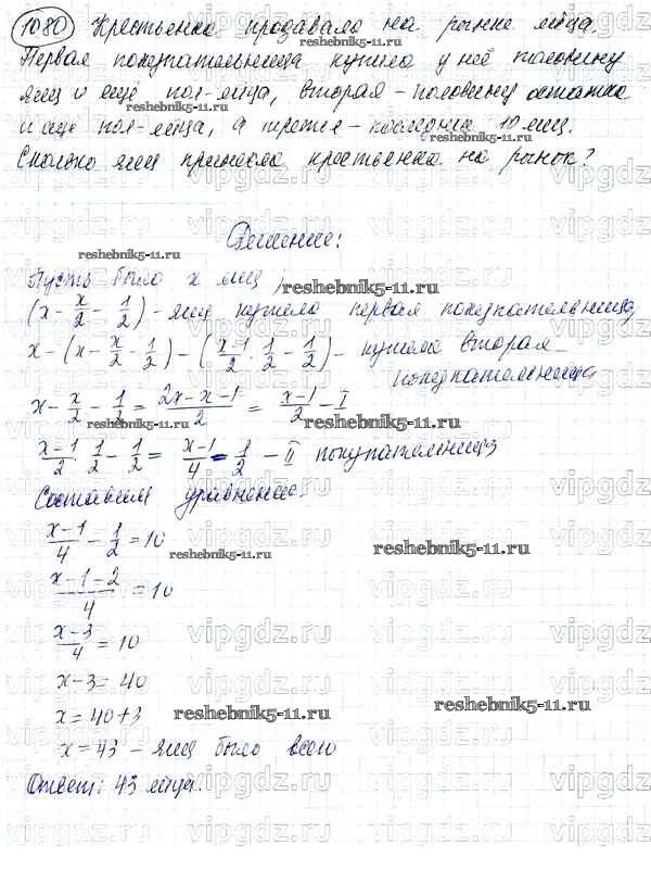 Готовая домашняя работа с ответами по Математике за 5 класс Никольский, Потапов, Решетников, Шевкин Учебник МГУ - школе Просвещение 2016 ФГОС - Упражнения 1080