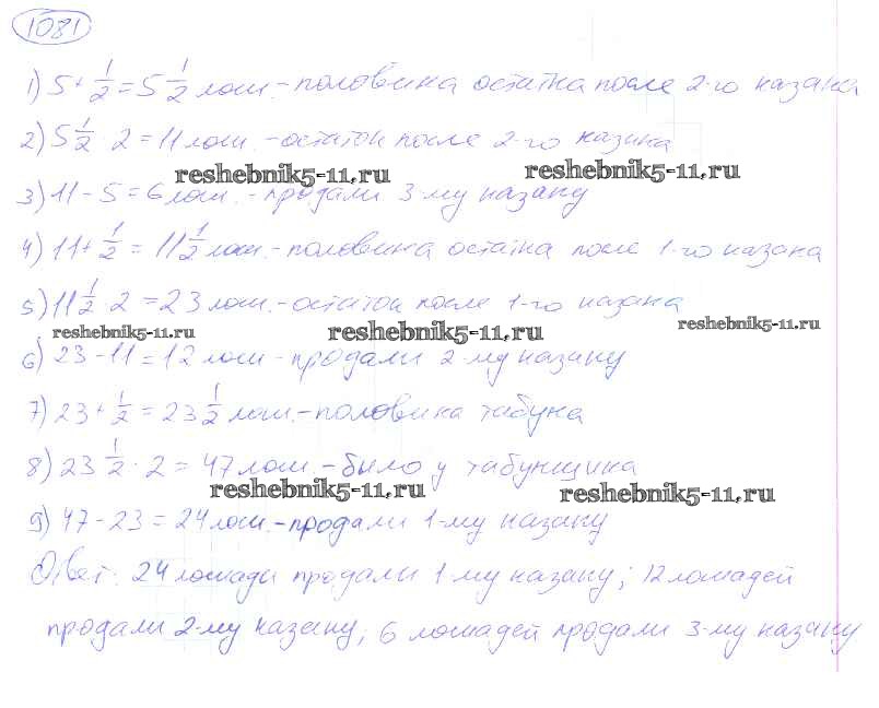 Готовая домашняя работа с ответами по Математике за 5 класс Никольский, Потапов, Решетников, Шевкин Учебник МГУ - школе Просвещение 2016 ФГОС - Упражнения 1081