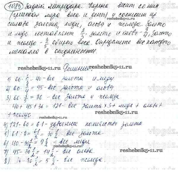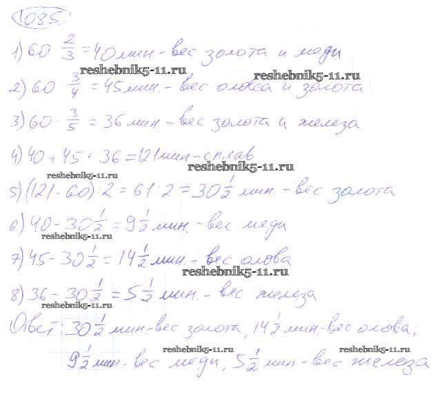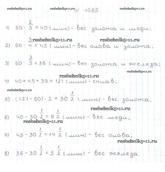 Готовая домашняя работа с ответами по Математике за 5 класс Никольский, Потапов, Решетников, Шевкин Учебник МГУ - школе Просвещение 2016 ФГОС - Упражнения 1085