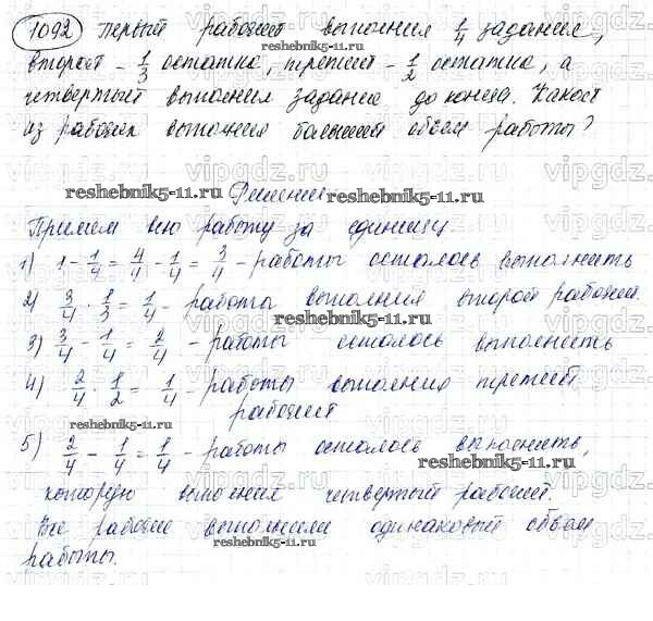 Готовая домашняя работа с ответами по Математике за 5 класс Никольский, Потапов, Решетников, Шевкин Учебник МГУ - школе Просвещение 2016 ФГОС - Упражнения 1092