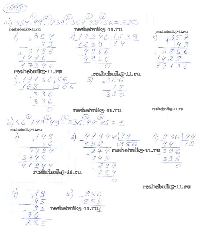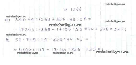 Готовая домашняя работа с ответами по Математике за 5 класс Никольский, Потапов, Решетников, Шевкин Учебник МГУ - школе Просвещение 2016 ФГОС - Упражнения 1098