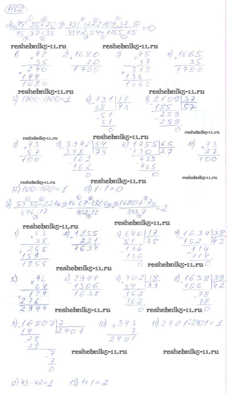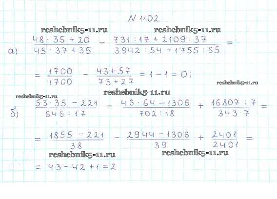 Готовая домашняя работа с ответами по Математике за 5 класс Никольский, Потапов, Решетников, Шевкин Учебник МГУ - школе Просвещение 2016 ФГОС - Упражнения 1102