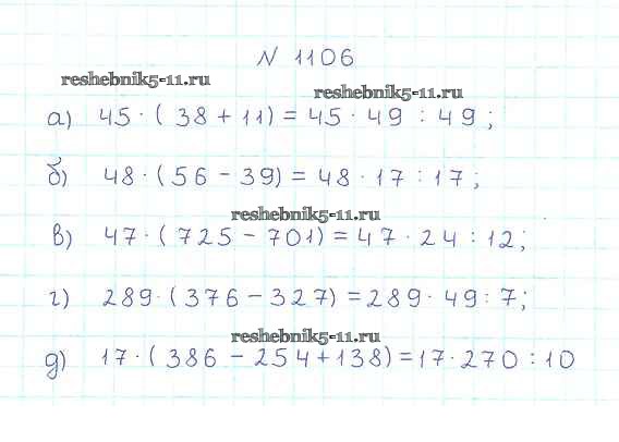 Готовая домашняя работа с ответами по Математике за 5 класс Никольский, Потапов, Решетников, Шевкин Учебник МГУ - школе Просвещение 2016 ФГОС - Упражнения 1106