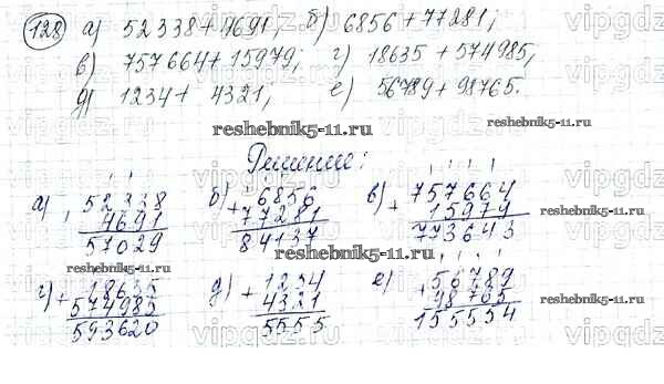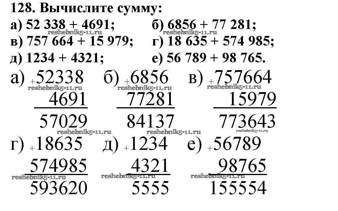 Готовая домашняя работа с ответами по Математике за 5 класс Никольский, Потапов, Решетников, Шевкин Учебник МГУ - школе Просвещение 2016 ФГОС - Упражнения 128